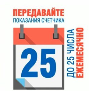 Срок приёма показаний приборов учёта воды с 23 по 25 число каждого месяца, включая выходные и праздничные дни.